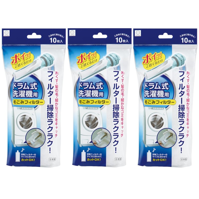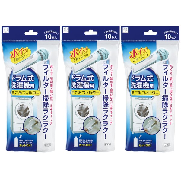 Kokubo Industrial Dust Filter for Front-Loader Washing Machines (10 Sheets x 3 Sets) Made in Japan / General Purpose (Lint Filter / Garbage Removal Filter) For Drum Loads Garbage Removal/Replacement Easy