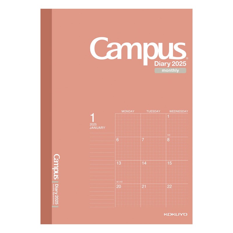 Kokuyo 2025 Campus Diary, Monthly Block, Graph Rule, A5, Red, 2024, Begins December