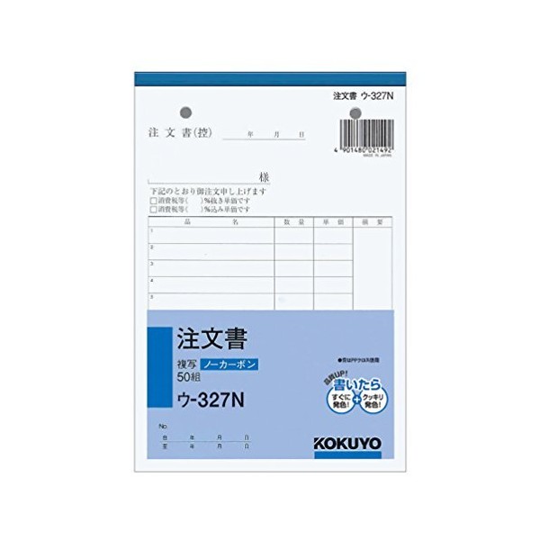 Kokuyo -327 Order, B6 Vertical Type, 50 Pairs No Carbons, Bulk Set (3 Pieces)