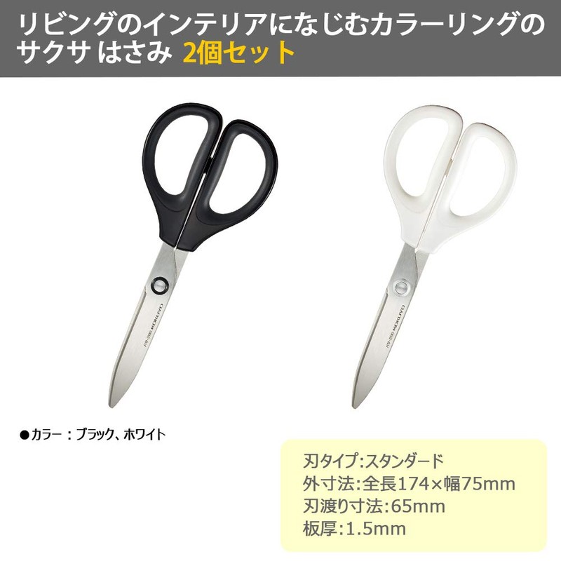 Kokuyo 99K Hasa-280-1-2SET Scissors Saxa Standard Blade Black White Set of 2