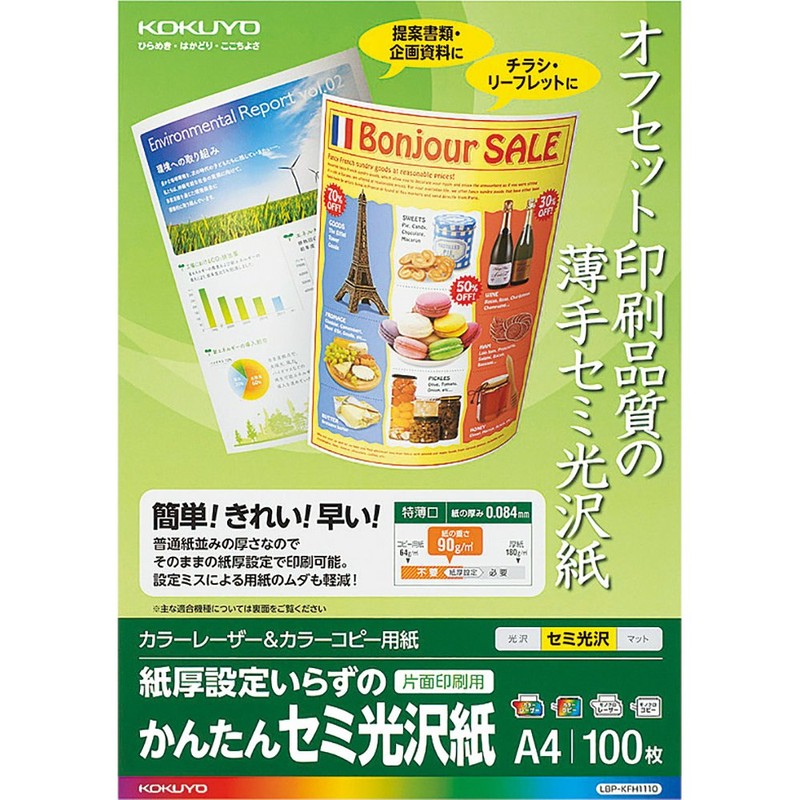 コクヨ(KOKUYO) コピー用紙 A4 セミ光沢紙 100枚 カラーレーザー カラーコピー LBP-KFH1110