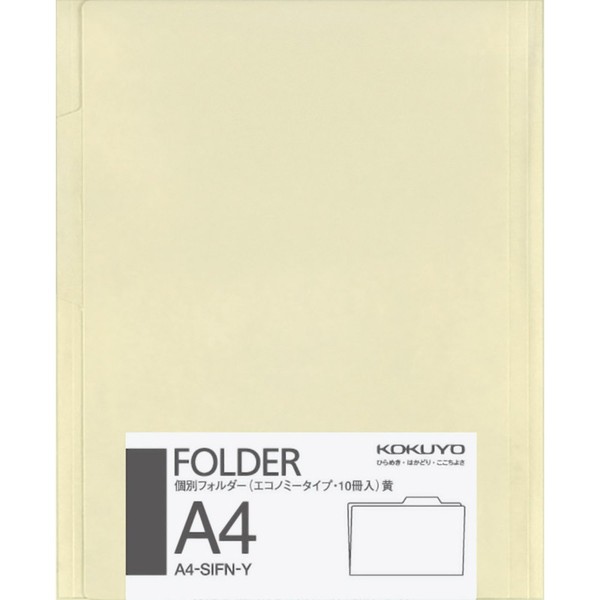Kokuyo A4-SIF-Y File Individual Folder, Economy Type, Pack of 10, Yellow