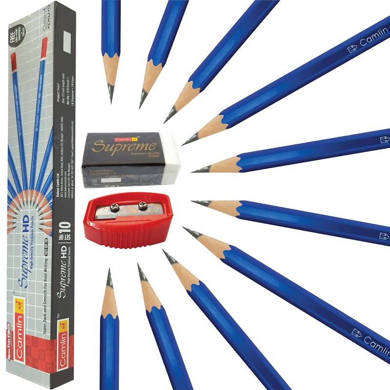 KOKUYO CAMLIN 10 Wooden Pencils Eraser Sharpener - Write Draw Sketch Smooth