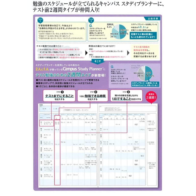 Kokuyo Campus Study Planner Notebook, 2 Week Ruled [Navy] A5 No-Y82LT-DB Pack of 5