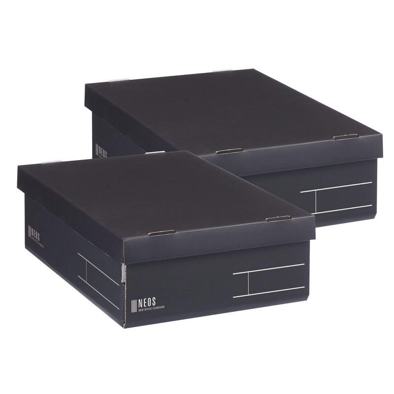 Kokuyo F-NE9832DX2 Storage Box, NEOS Regular Half Size with Lid, Set of 2, Black