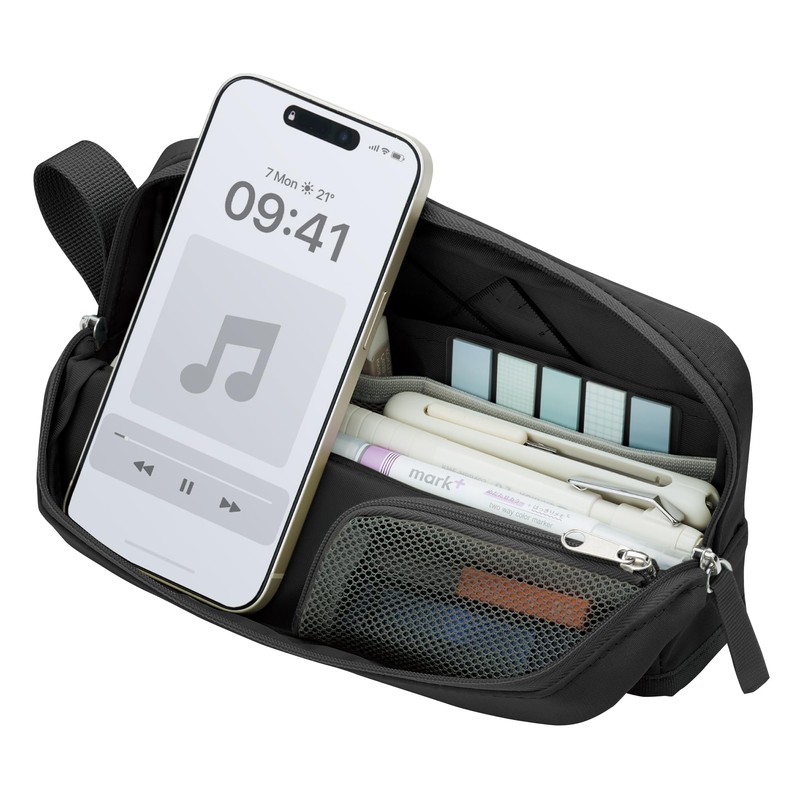Kokuyo F-VBF262D Pencil Case, Large Capacity, Tool Pen Case, Kabako, Half Pocket, Black