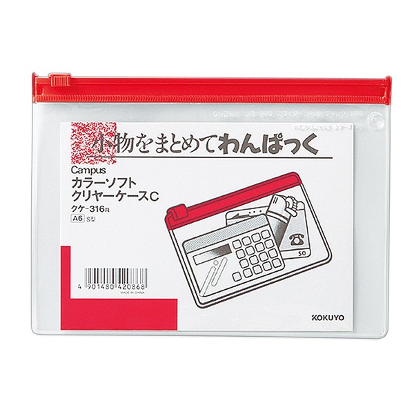 Kokuyo Kuke-316R Campus Clear Case, S-Shaped, Soft, A6, Red