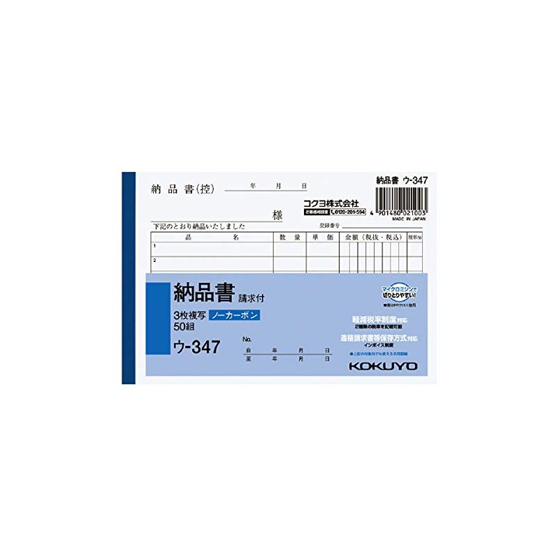 Kokuyo NC Copy Book, 3 Invoice Included, A6 Horizontal, 6 Lines, 50 Pairs, U-347, Supports Reduced Tax Rate System (x5)