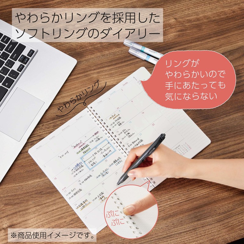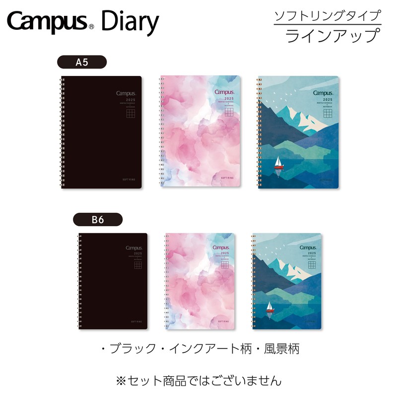 Kokuyo Ni-SMNL2-A5-25 Campus Soft Ring Diary, Monthly Block, A5, Landscape Pattern, Begins December 2024
