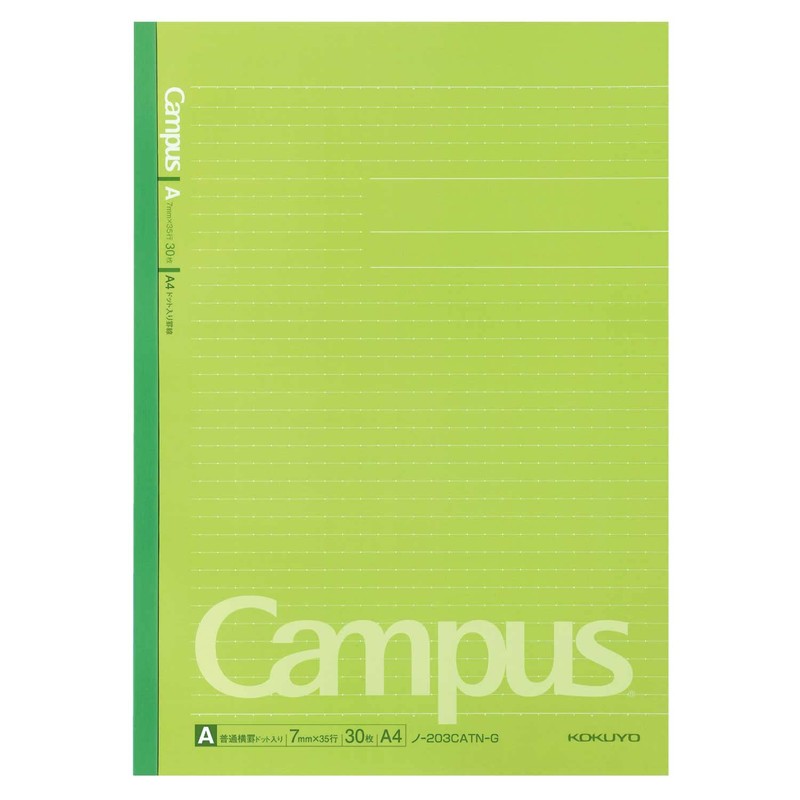 Kokuyo No-203CATN-G Campus Notebook, Dot Ruled, A4 Size, Green