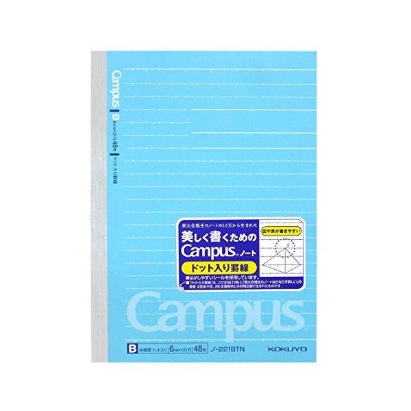 Kokuyo No-221BTN Campus Notebook, Ruled with Dots, A6, B Ruled, 48 Pieces, Set of 3