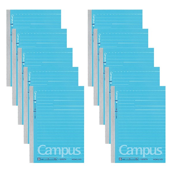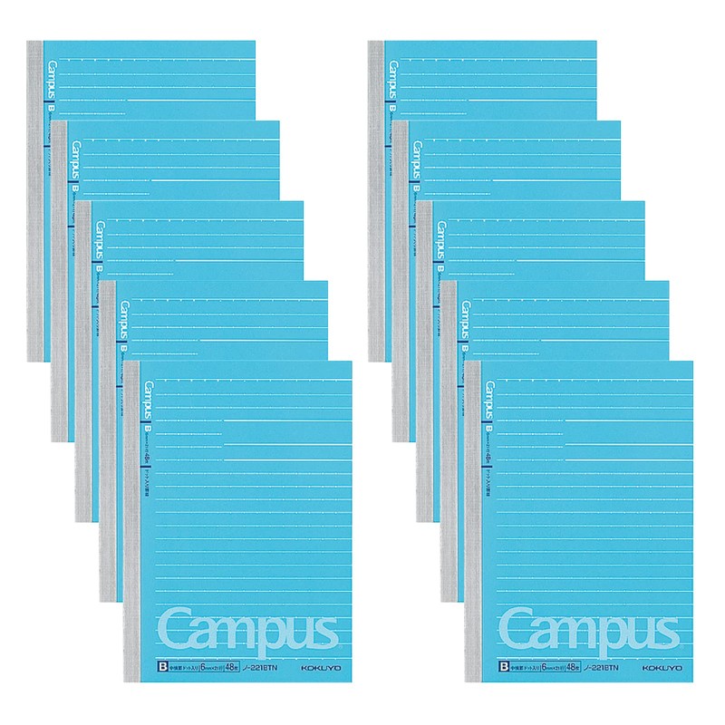 Kokuyo NO-221BTNX10 Notebook, Campus Notebook, Dotted Ruled, A6, B Ruled, 48 Sheets, Set of 10