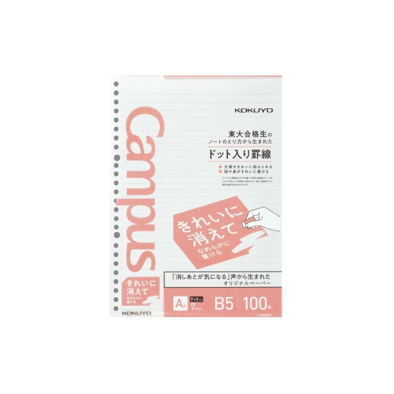 Kokuyo No-K836AT Campus Loose Leaf Clean Erase Smooth Writing B5 A Ruled Dot Ruled