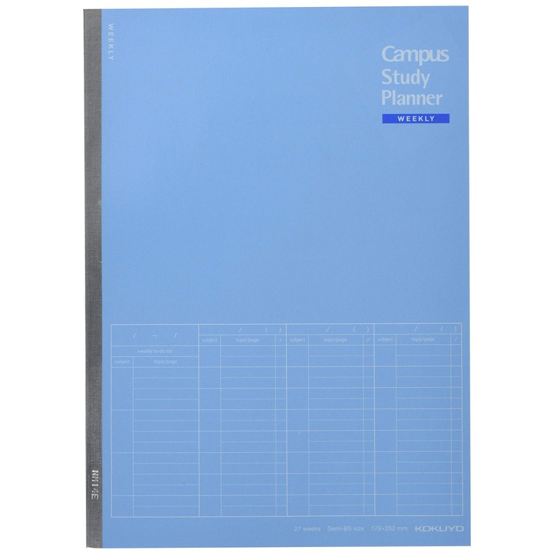 Kokuyo No-Y80MW-B Campus Notebook, Study Planner, Weekly Ruled, B5, Blue