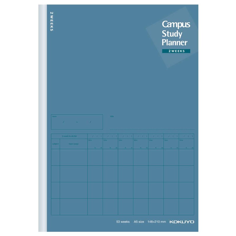 Kokuyo No-Y82LT-DBX2SET Campus Notebook, Study Planner, 2 Weeks Ruled, A5, Navy, Set of 2