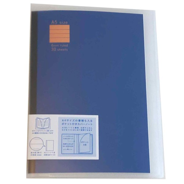 Kokuyo Notebook with Pocket, Cover Notebook, A5, B Ruled, Dark Blue, 99K No - V625B-DB
