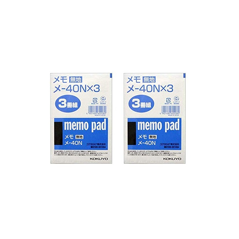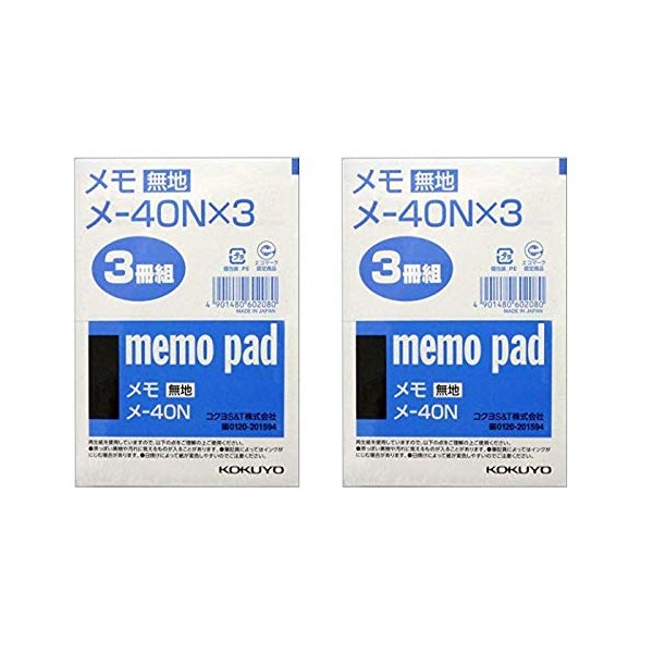 Kokuyo Notepad, Plain, B7, 76 Sheets, Me-40NX3, 2 Bags (Total of 6 Books)