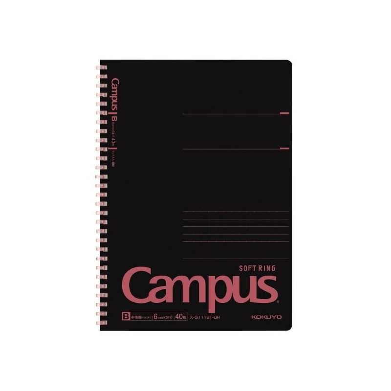 Kokuyo S111BT-DR Campus Soft Ring Notebook, Semi-B5, Dotted B Ruled, 40 Sheets, Black Color, Red