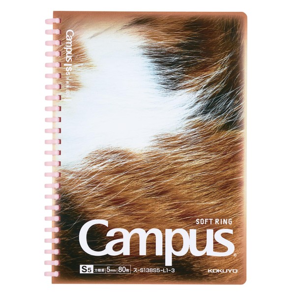 Kokuyo S138S5-L1-3 Campus Paw Soft Ring Notebook, A5, 0.2 inch (5 mm) Squared, Triltoise Cat