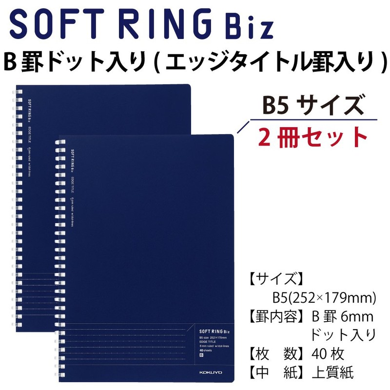 Kokuyo SJ201BT-DBX2 Notebook, Soft Ring, B5, Dotted B Ruled, Edge Title, Navy, Set of 2