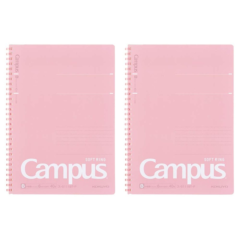 Kokuyo SU-S111BT-PX2SET Campus Soft Ring Notebook, 40 Sheets, Ruled with Dots, B5, Pink, Set of 2