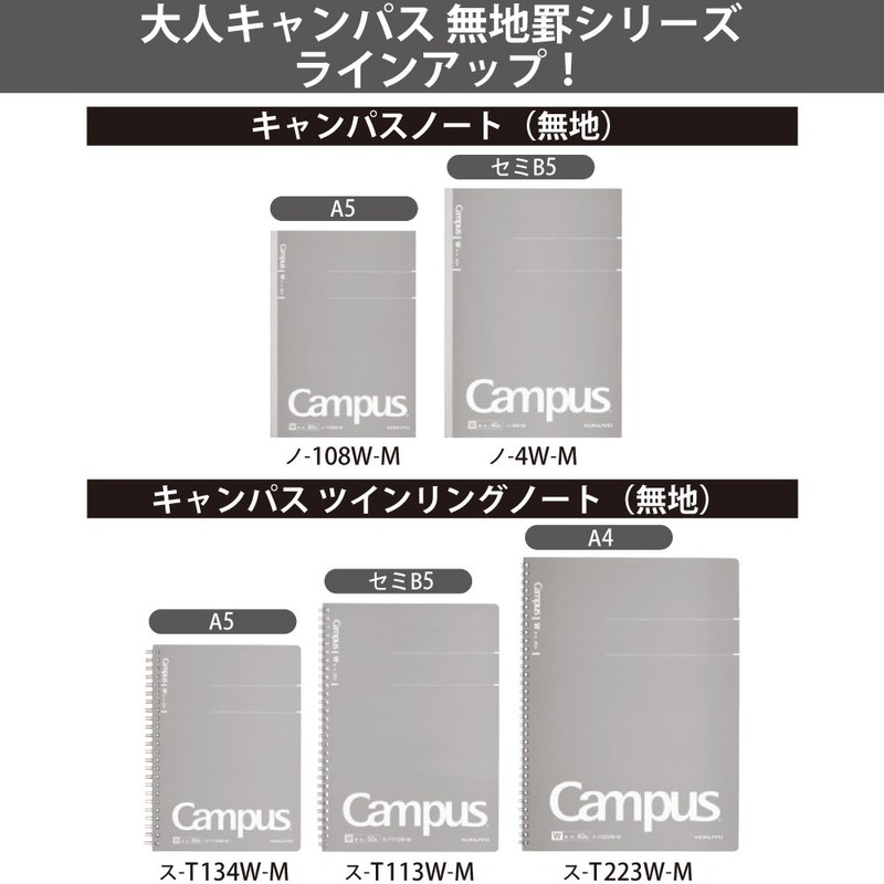 Kokuyo T113W-M Campus Twin Ring Notebook, Adult Campus, Plain, B5, 50 Sheets