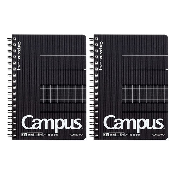 Kokuyo T153S5-DX2SET Campus Twin Ring Notebook, Graph Ruled, Cut-Off, A6, Set of 2