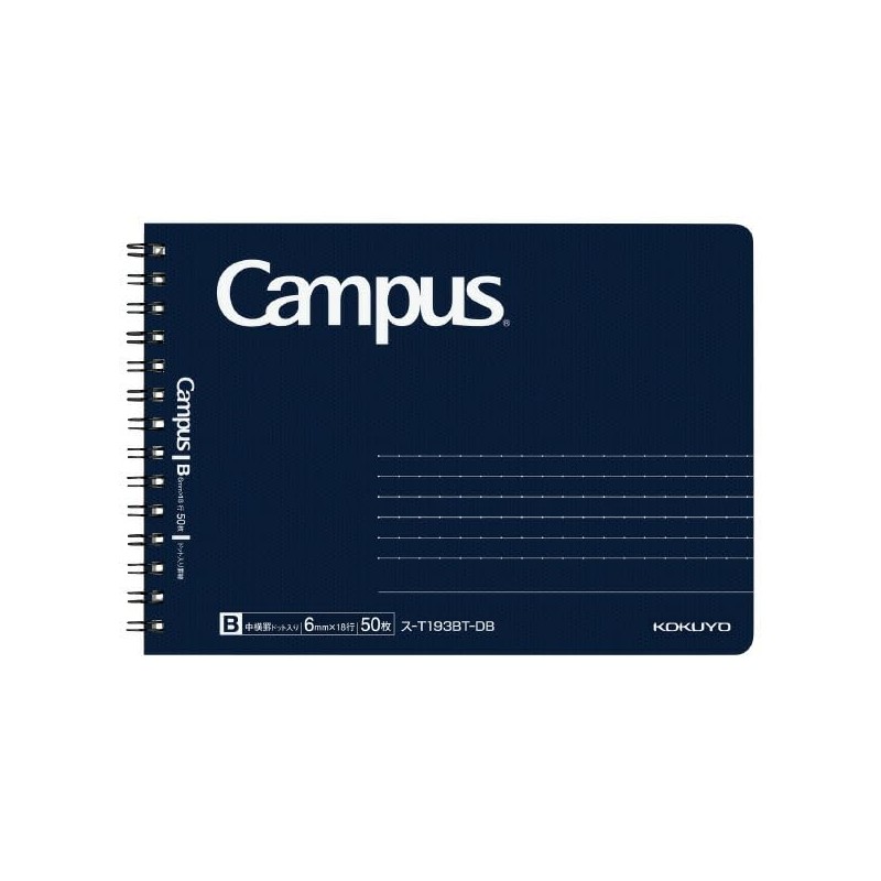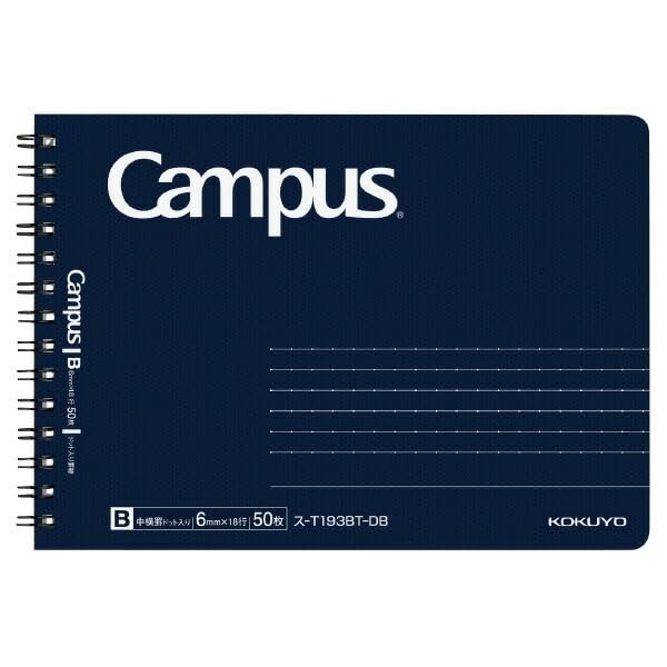 Kokuyo T193BT-DB Campus Twin Ring Notebook, Adult Campus, Half Size, Dotted B6 Model, Navy, 50 Sheets