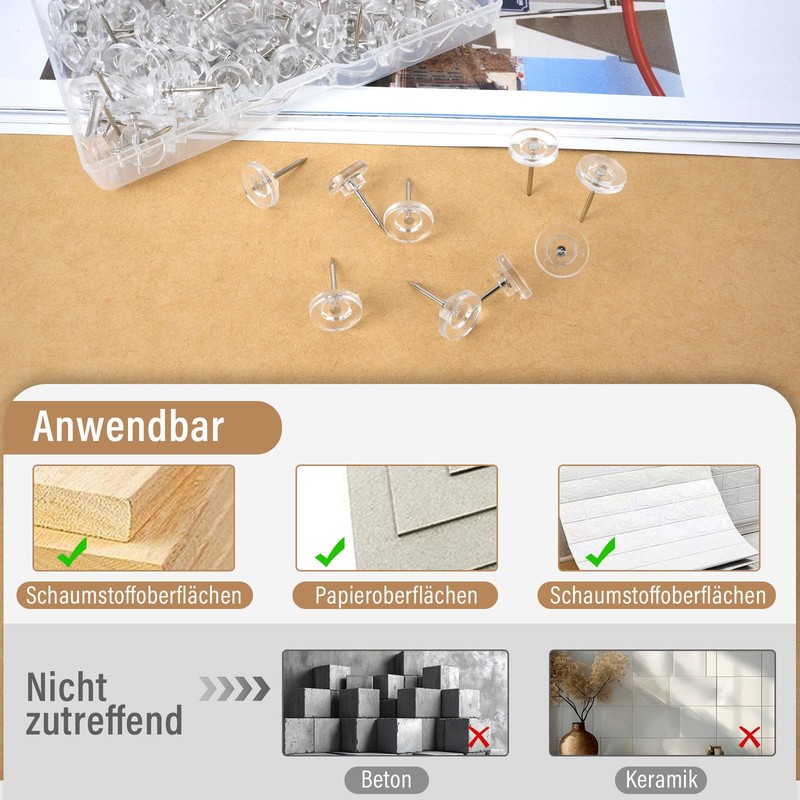 • Thoughtfully equipped: you will receive 120 pieces transparent thumbtacks flat head, which is enough to easily cope with all kinds of daily needs. Comes with a transparent storage box for easy storage