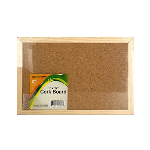 Perfect for pinning notes and decorating, this wood framed cork board features a real cork surface with a strong wooden frame. Easily mounts to walls with provided screws. Measures approximately 8" x 12". comes shrink wrapped.