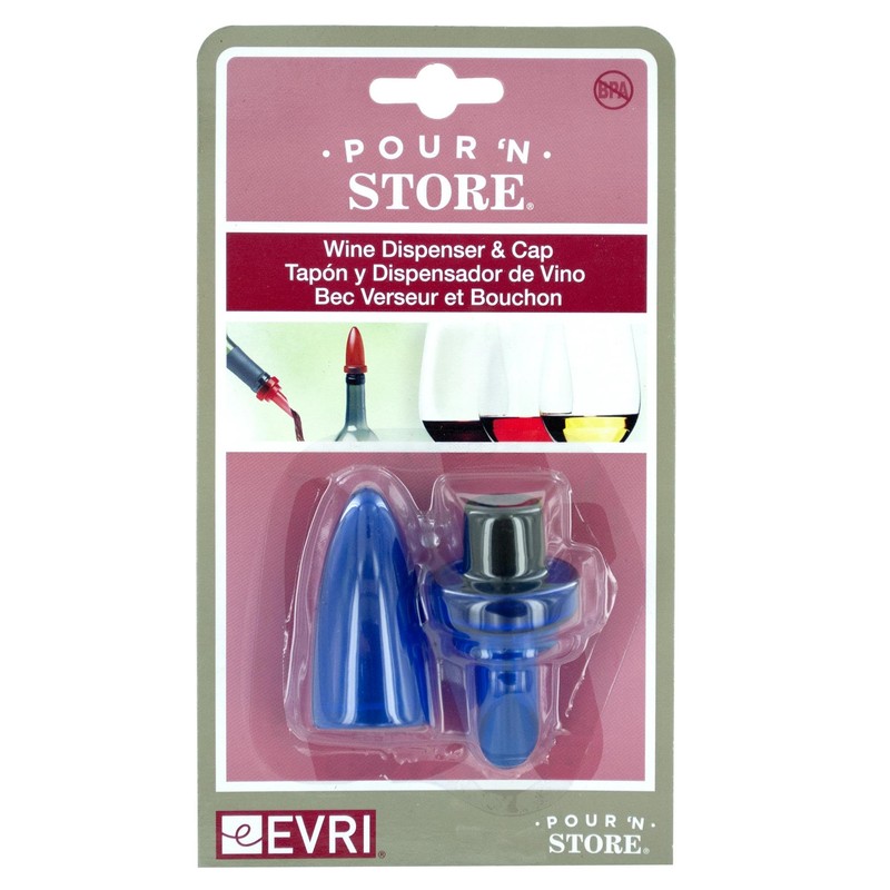 - Easily pour and seal wine bottles with this Pour 'N Store Wine Dispenser & Cap Set featuring a pour spout and storage cap made of durable plastic