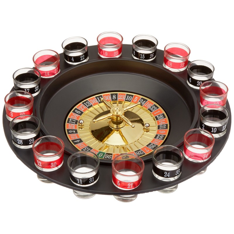 Add fun to a birthday, bachelor or format party with this fun roulette drinking game. It's a game for those who are ready to have fun with their alcohol. Includes a roulette wheel, 16 numbered shot glasses and 2 metal Balls. Pick your numbers and get ready to do some drinking! comes packaged in an individual box.