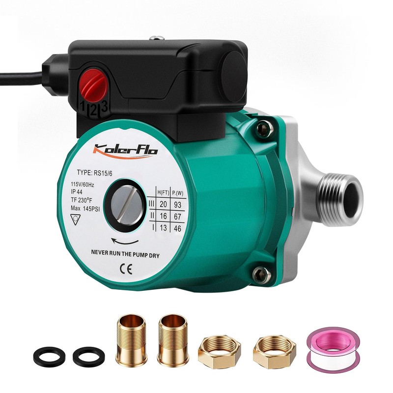 KOLERFLO Hot Water Recirculating Pump,3/4 NPT Water Circulator Pump,Circulation Pump for Domestic Water Heater System (RS15-6 Stainless Steel Green)