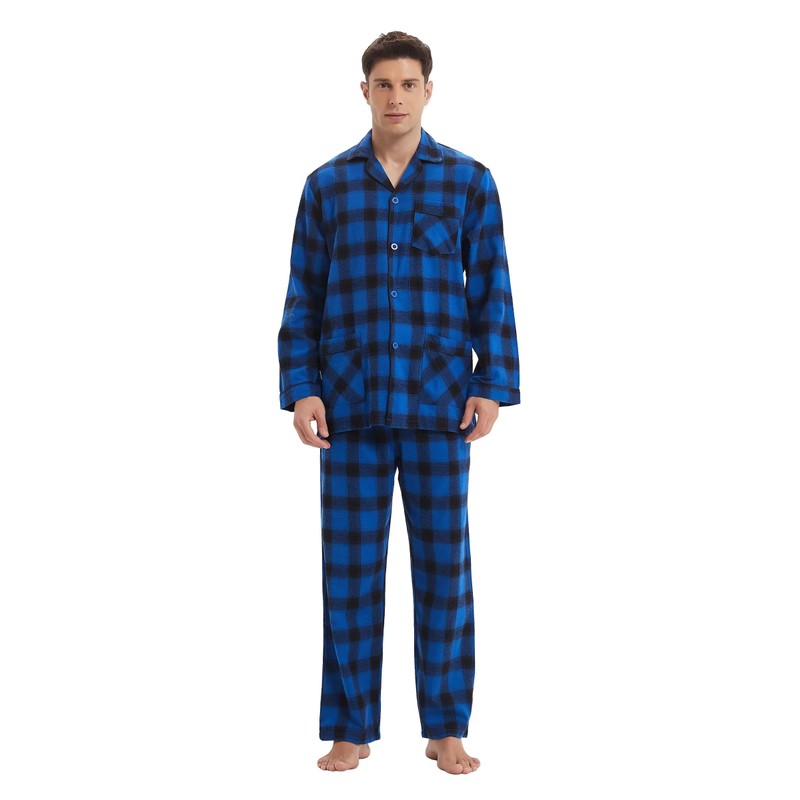 kolipajam Men's 100% Cotton Flannel Pajama Set Yarn Dyed Cozy Bottom with Pockets Drawstring waistband Winter PJs for Men