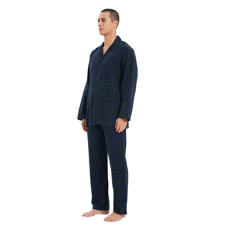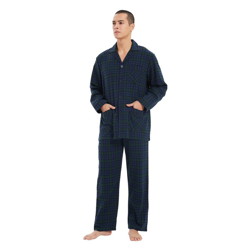 kolipajam Men's 100% Cotton Flannel Pajama Set Yarn Dyed Cozy Bottom with Pockets Drawstring waistband Winter PJs for Men