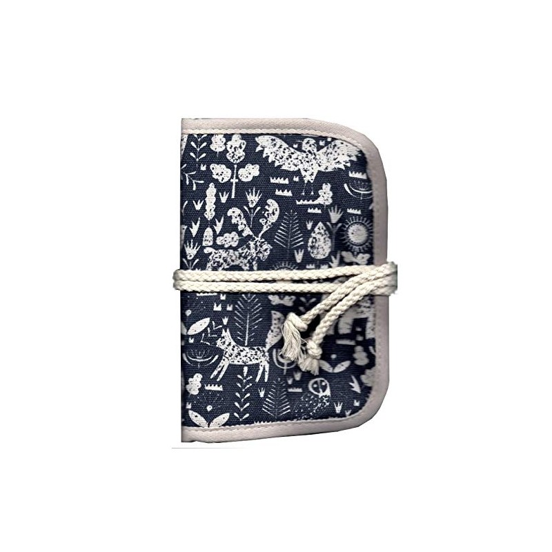 • Small soft shell pouch with a zippered pocket. Black stamp pattern with soft rope to keep needles secure.