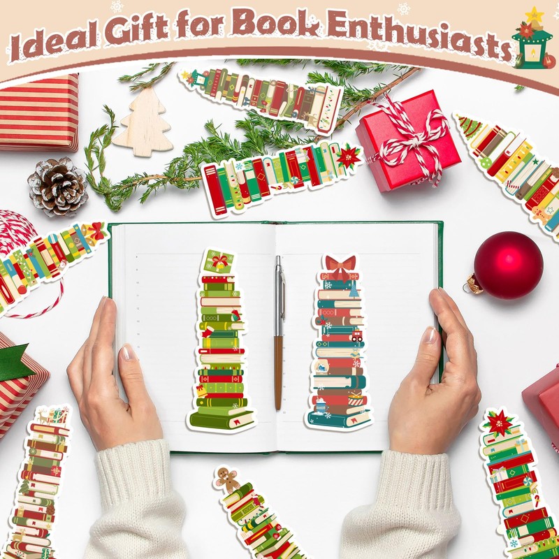 - Unique Bookshelf Shape: featuring intricately created bookshelf shapes, our double sided reading page markers serve as quaint miniatures, further enhancing the immersive experience of your reading journey; At the same time, some classic elements are applied, such as cats, rulers, alarm clocks, globes, pencils, Christmas tree and more, to bring fun to your reading