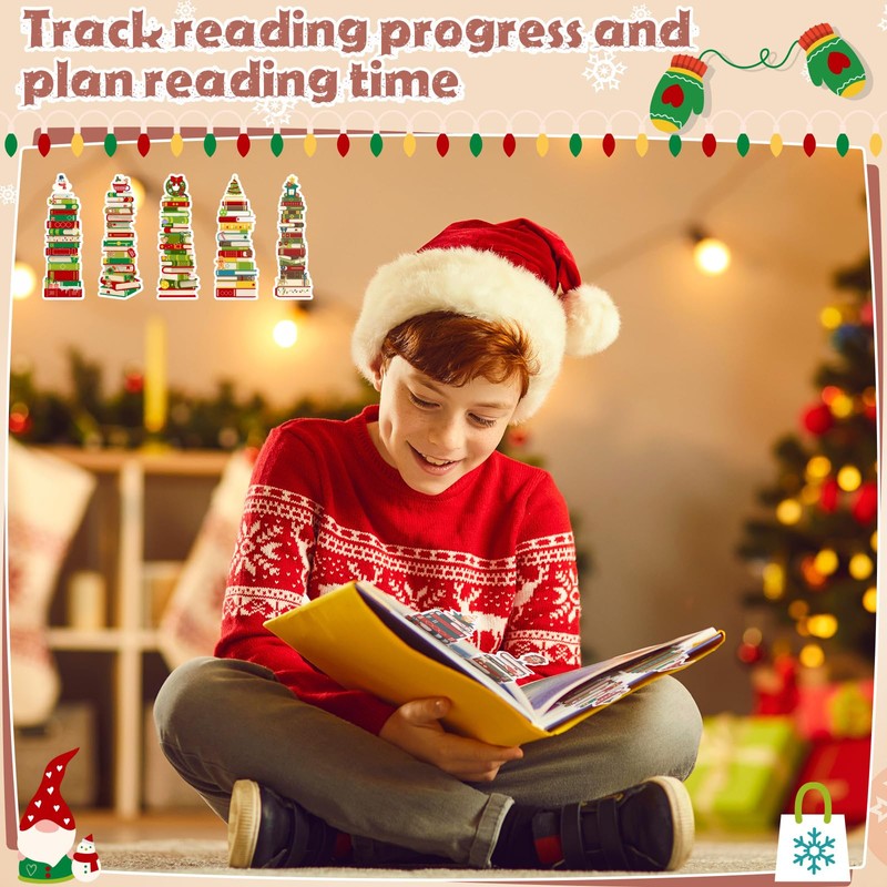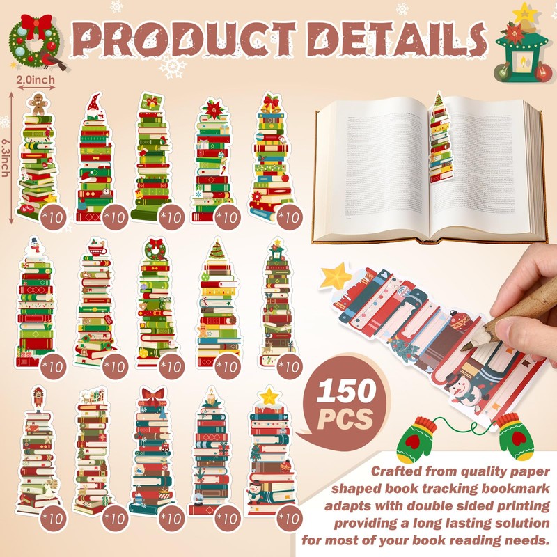 Kolldenn 150 Pcs Book Tracker Bookmarks Bulk 6.3 x 1.97 Inch Bookshelf Design Bookmarks Paper Book Tracking Bookmark Double Sided Reading Page Markers for Book Lovers Students School (Christmas)