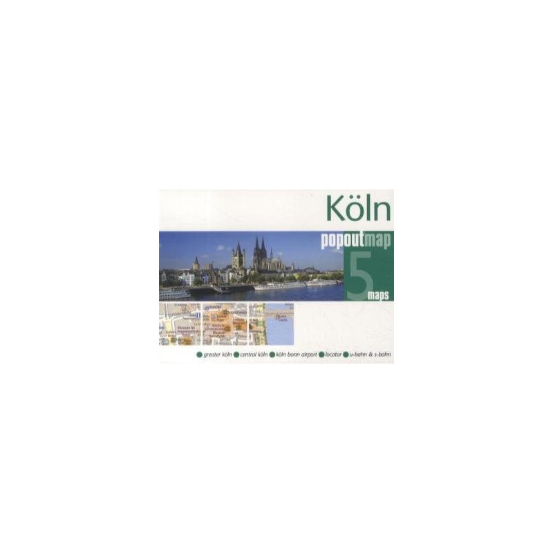 Köln PopOut Map, 5 maps: Greater Köln, Central Köln, Köln Bonn Airport, Locator, U-Bahn & S-Bahn