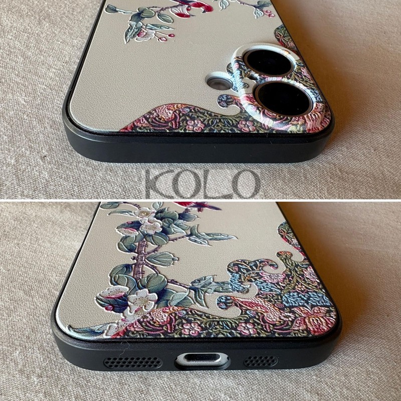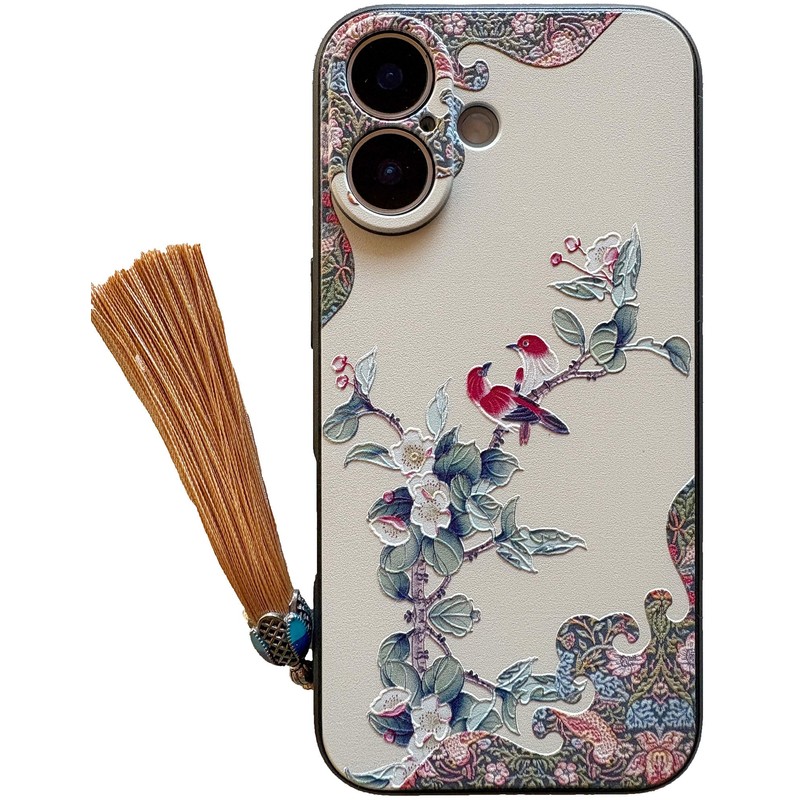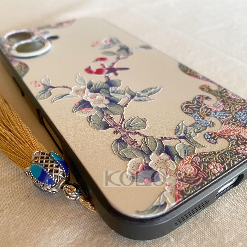 KOLO【花鳥如意】iPhone対応 17 中国風のスマホケース スマホカバー(クリーム色) iPhone17