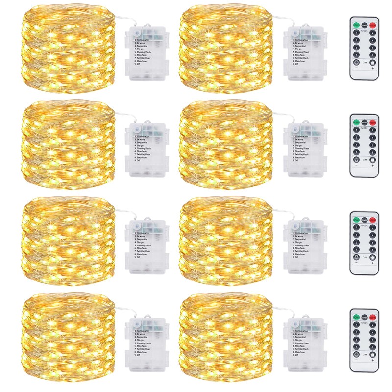 kolpop kolpop 8 Stck Lichterkette Batterie, 12M 120 LED 8 Modi Draht mit Fernbedienung und Timer Wasserdicht fr Au?en Innen Weihnachtsbaum Deko, Warmwei?
