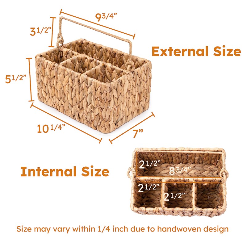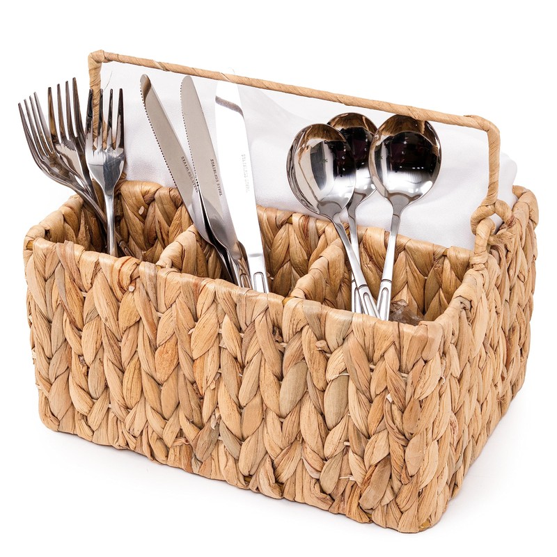 - KOLWOVEN Wicker Utensil Caddy Carrier , Wicker Flatware Organizer, Hand Woven Water Hyacinth Cutlery Holder for Countertop with Handle