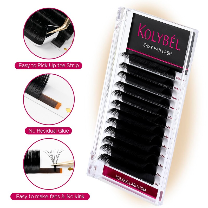 - Size Specifications:Easy Fan Lash Extension 12 Rows/ Tray. KOLYBEL provide more size with you: 0.03/0.05/0.07 Thickness, C/C/D/DD Curl, 8~18mm Single Length/Mix8-15/Mix 15-20.