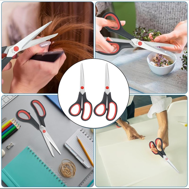 KOLZEMV Stainless Steel Scissors Set of 2, Scissors 21 cm Scissors with Ultra Sharp 2.5 mm Thick Blades, Comfortable Handles, Durable Scissors for Office School Crafts at Home, Right/Left-Handed