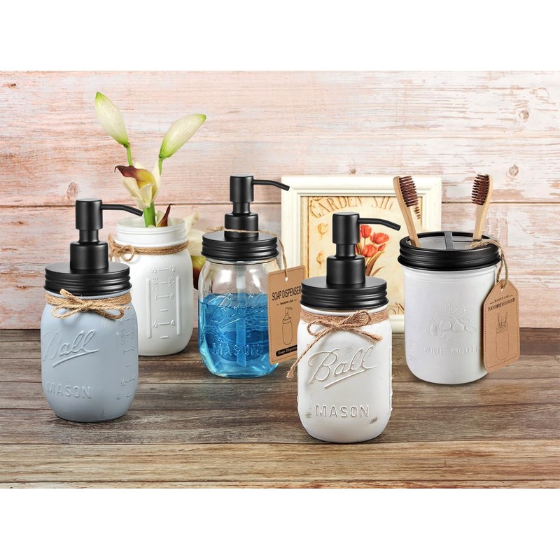 Choosing the Mason Jar Bathroom Accessories lids Set is something that shouldn't be missing in bathroom kitchen farmhouse décor