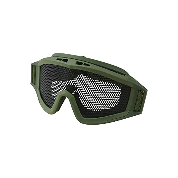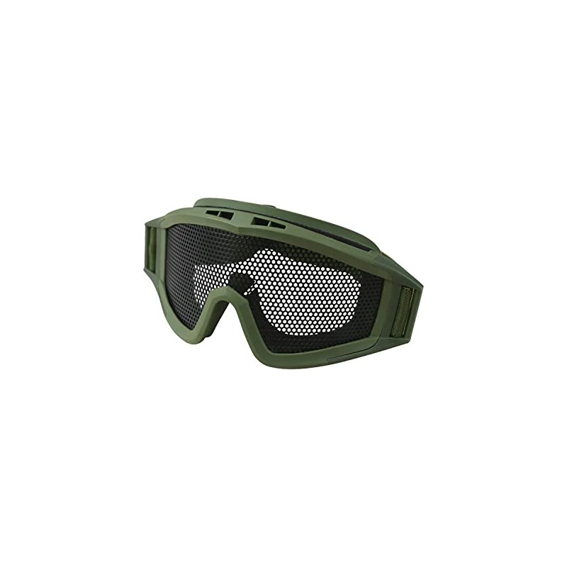 Steel mesh lens High strength polymer frame Adjustable elastic strap Foam padding