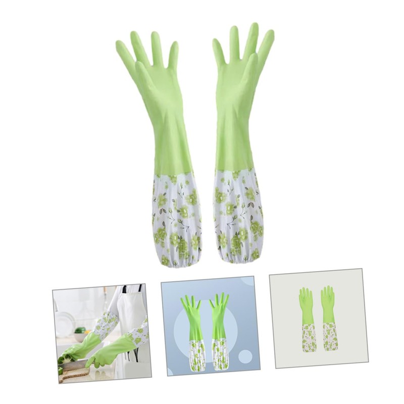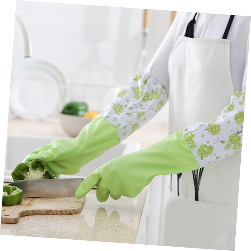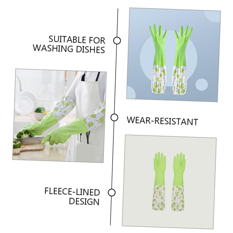 KOMBIUDA 1 Pair Long Cuff Reusable Dish Washing Gloves with Lining Warmth Kitchen Cleaning Gloves for Winter Use Non Slip Decorative