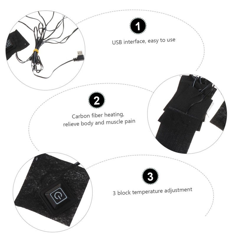 KOMBIUDA 1pc Adjustable Electric Heated Pad Usb Powered Clothes Heating Mat for Fast Heating and Warmth for Cold Weather Temperature Settings Skin-friendly Carbon Fiber Material
