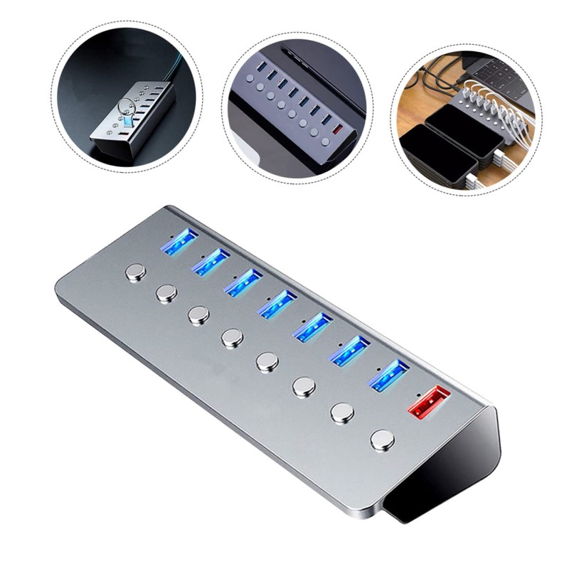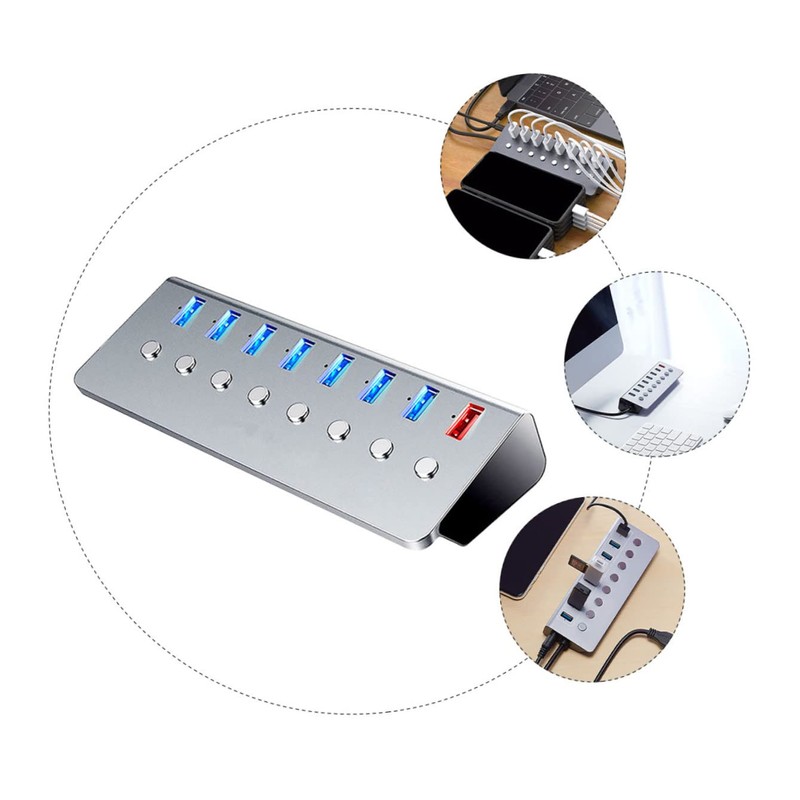 - 7 Ports USB 3.0 Hub: Independent sub-control : each is independently controlled, and the button can be turned off when the USB flash drive is plugged in and not in use.