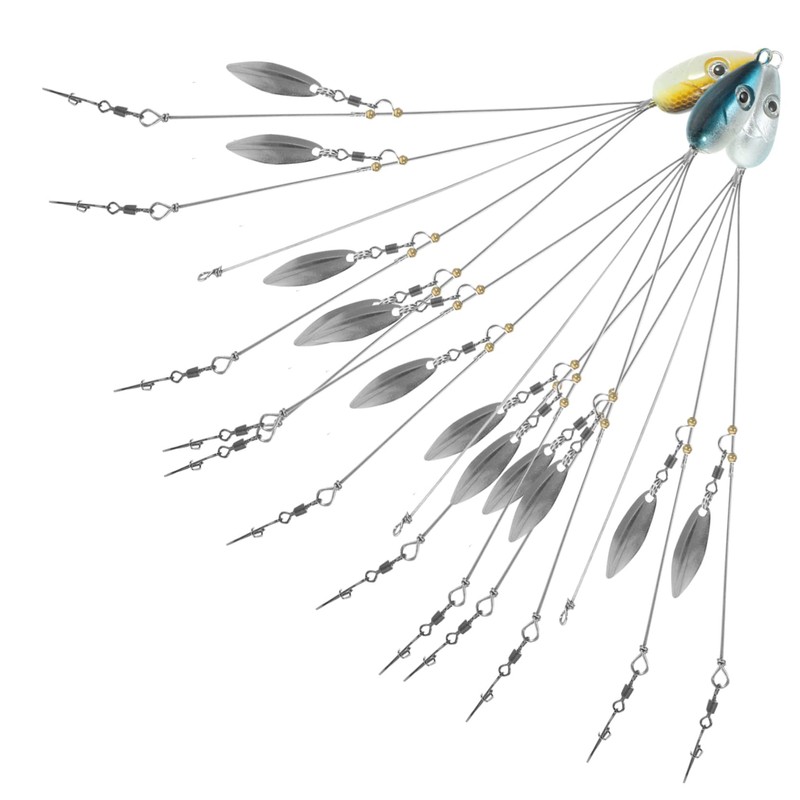 - Creative lure makes your fishing event be easier and bring you a good experience. It can rotate 360 degrees, while splashing water and sound to attract the attention of big fish perch sinking hooks.